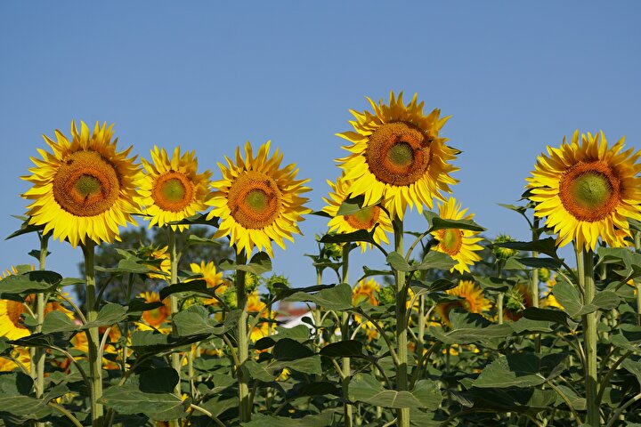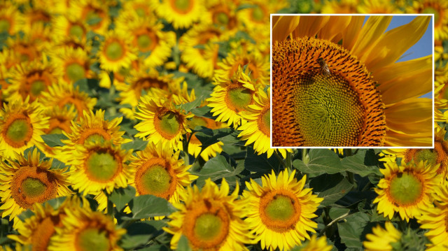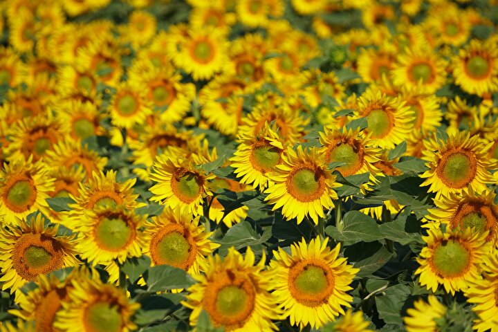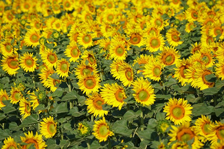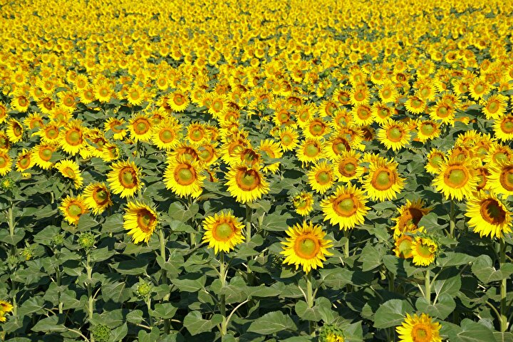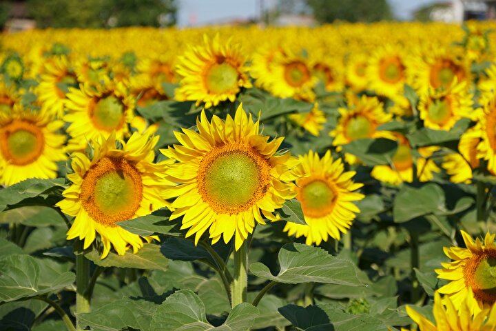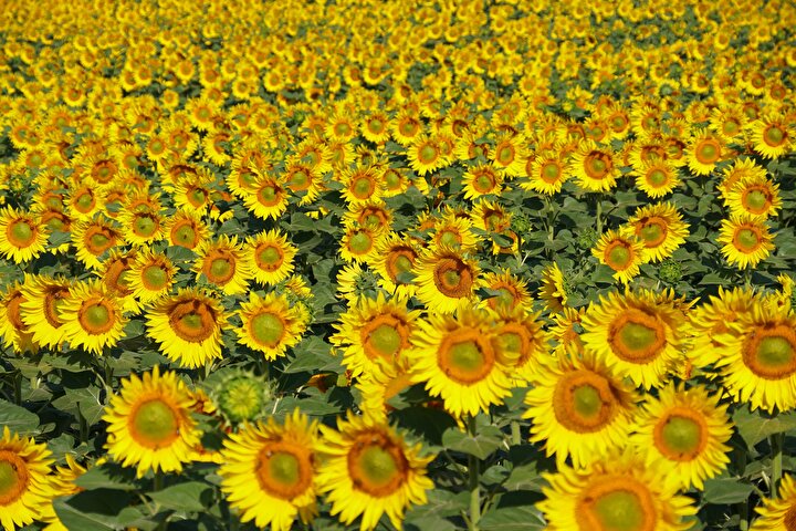 Tekirdağ'da ayçiçeklerin açmasıyla sarıya boyanan tarlalar güzel görüntü oluşturdu.