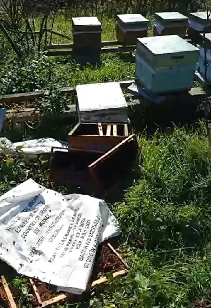 Uygun, zarar gören kovanlarını cep telefonu kamerası ile görüntüledi ve durumu İlçe Tarım Müdürlüğü'ne bildirdi.