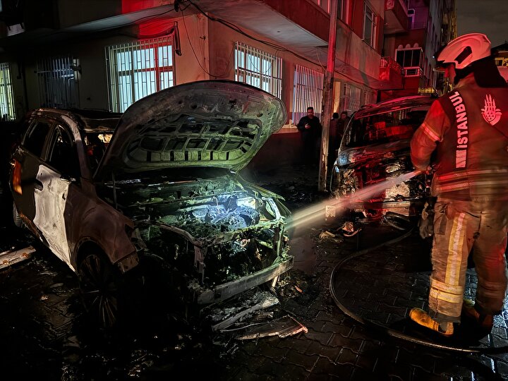 İstanbul Bahçelievler'de çıkan yangında 4 otomobil, 1 minibüs ve 1 hafif ticari araç kullanılamaz hale geldi.