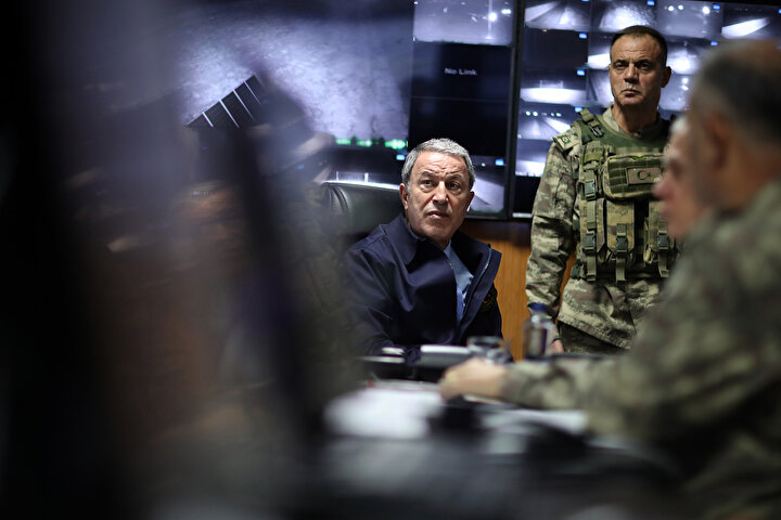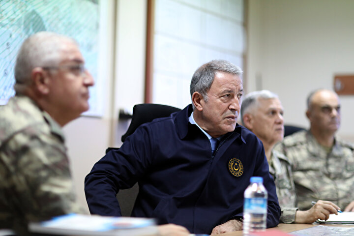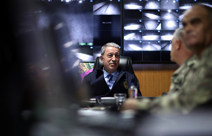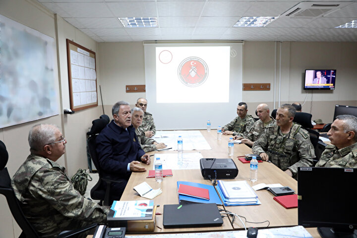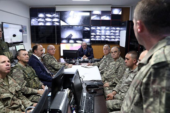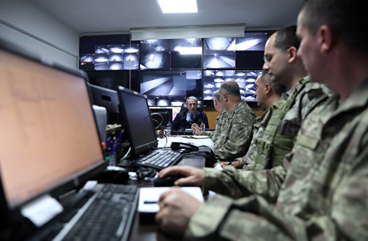 Faaliyetlere ilişkin brifing alan, talimatlar veren Akar, hudut hattını anbean takip eden Sınır Güvenlik Sistemi'nden sınırı inceledi. Barış Pınarı Harekatı kapsamında Tel Abyad'da bulunan bir birliğin komutanıyla da telsizden görüşen Akar, personelin durumuna, faaliyetlerine ilişkin bilgi aldı. Mehmetçiğin moral ve motivasyonuna ilişkin sorusuna, "Moralimiz yüksek her türlü göreve hazırız" yanıtını alan Akar, "Burada herhangi bir şey bitmiş değil, her an her şey olabilir. Ona göre herkesin her an hazırlıklı olması lazım" karşılığını verdi.