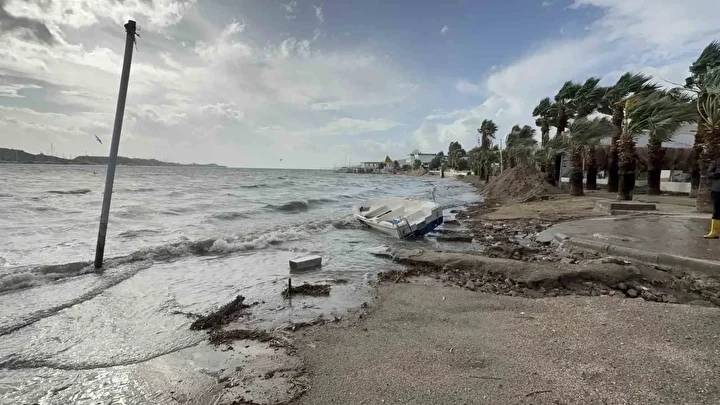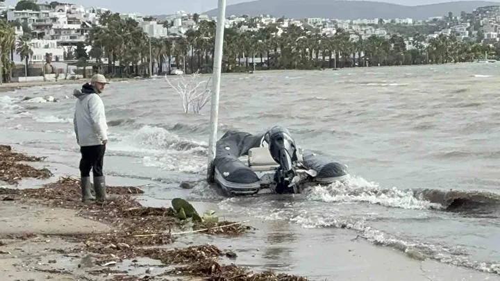 Fırtınanın hızının 70 kilometreyi bulmasıyla birlikte özellikle küçük balıkçı tekneleri dalgaların etkisiyle batarken, Gümbet sahilinde iki tekne ve bir bot karaya oturdu.