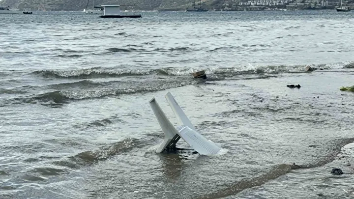 Dağdan sürüklenen çerçöp denizle uluşunca sahil boyunca kirli bir görüntü oluştu.