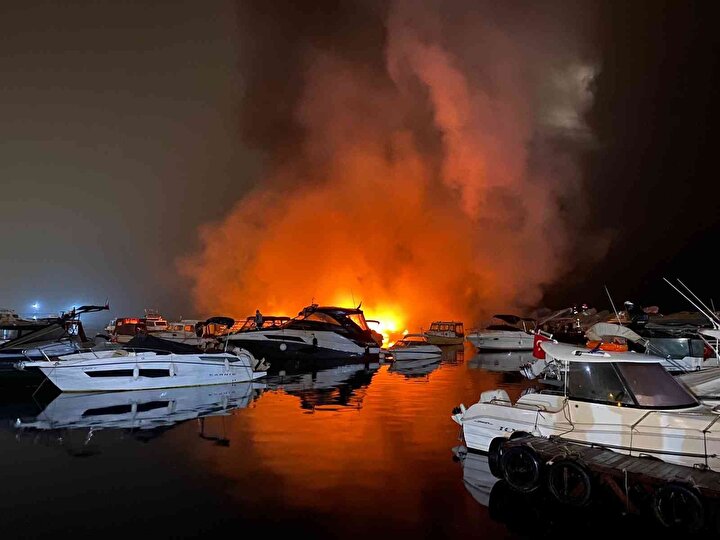 Yangının diğer teknelere sıçramaması için tekneler güvenli bölgeye çekildi.