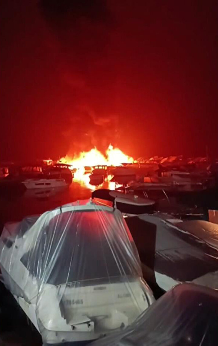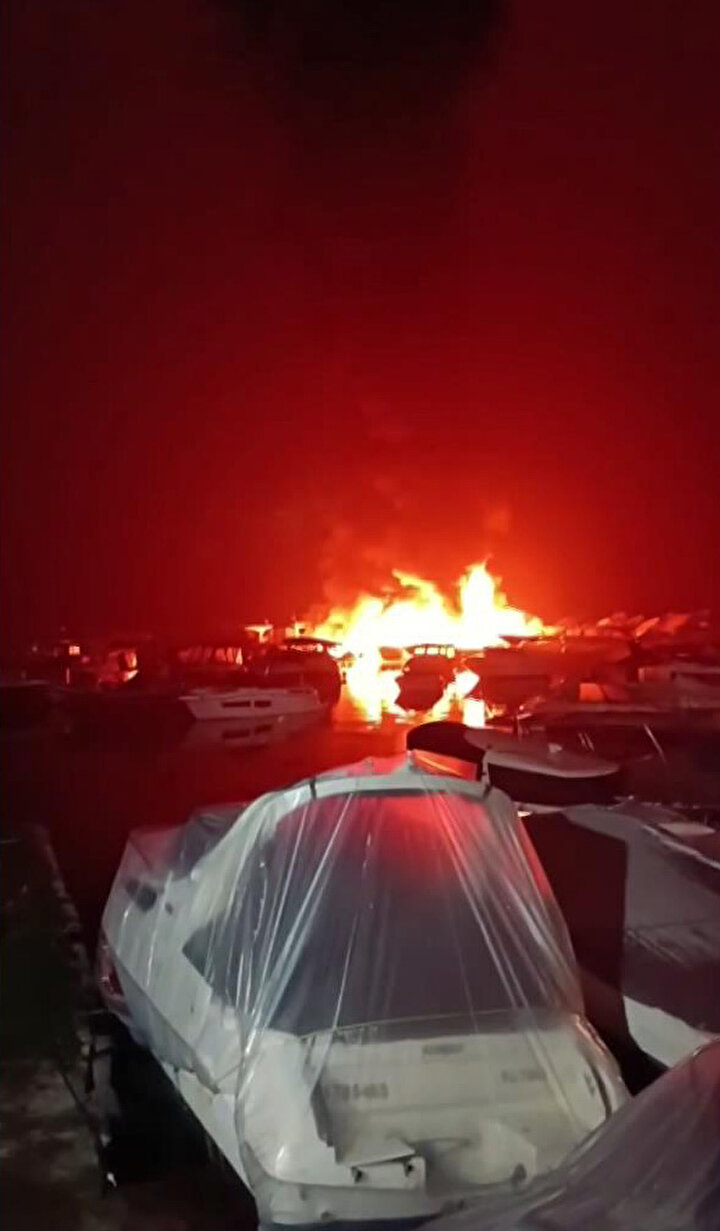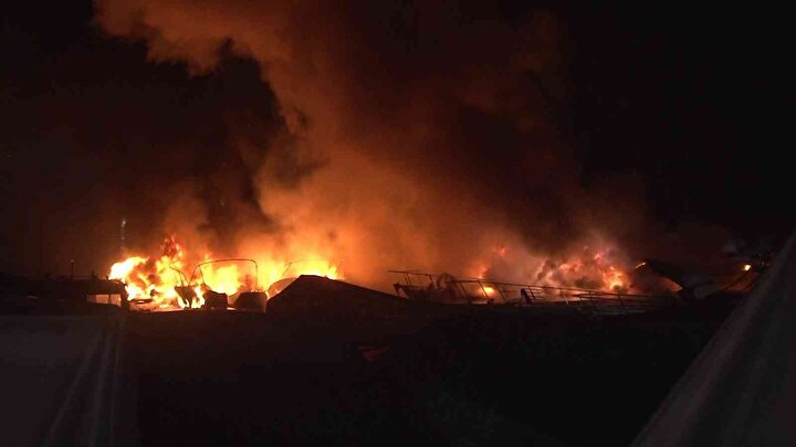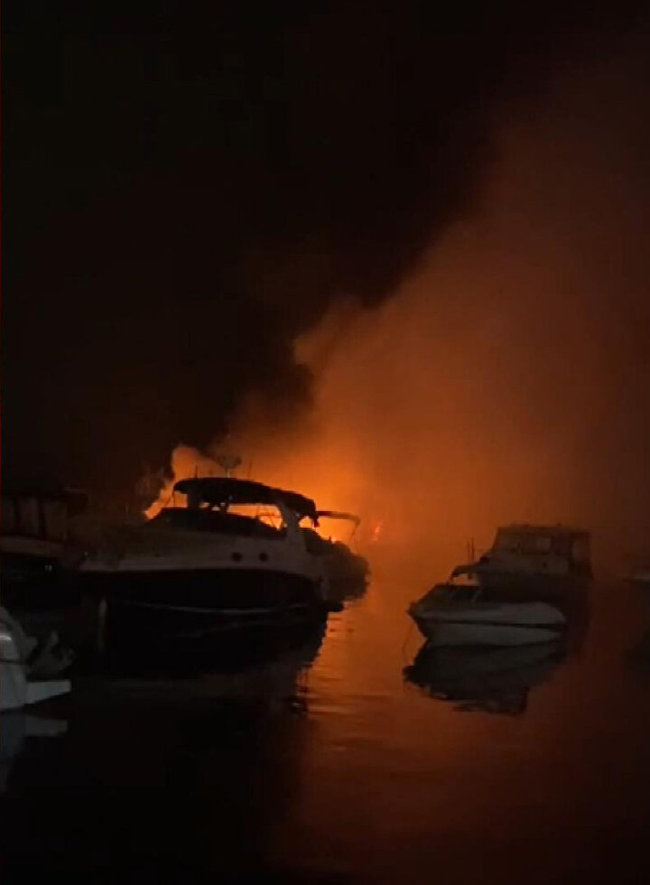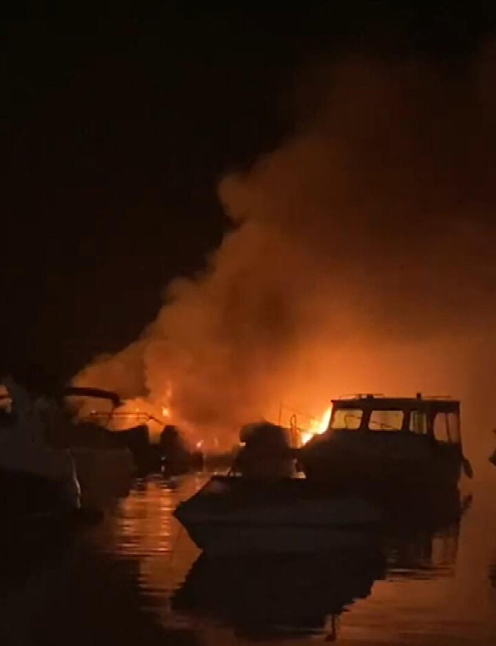 İddiaya göre elektrik kontağından kaynaklı yangın çıktı. Kısa sürede dumanların yükseldiği tekneler bir anda alev topuna döndü.