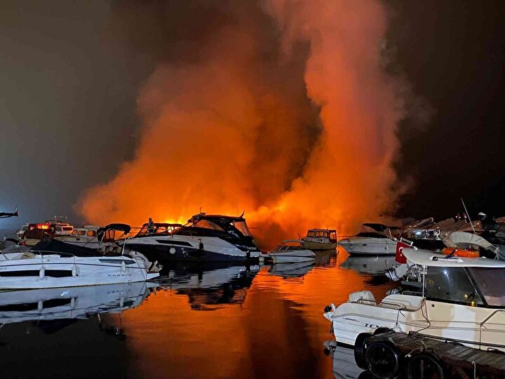 Olay yerine gelen itfaiye ekipleri yanan teknelere müdahale ederken polis ekipleri çevrede geniş güvenlik önlemleri aldı.