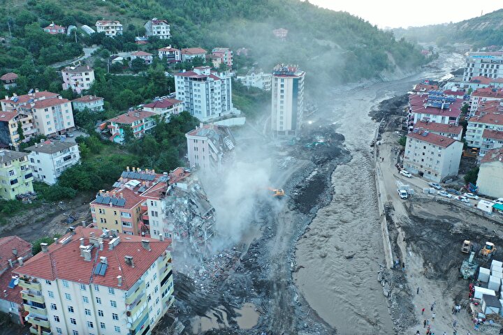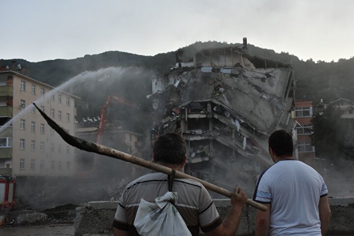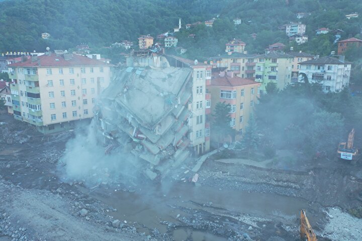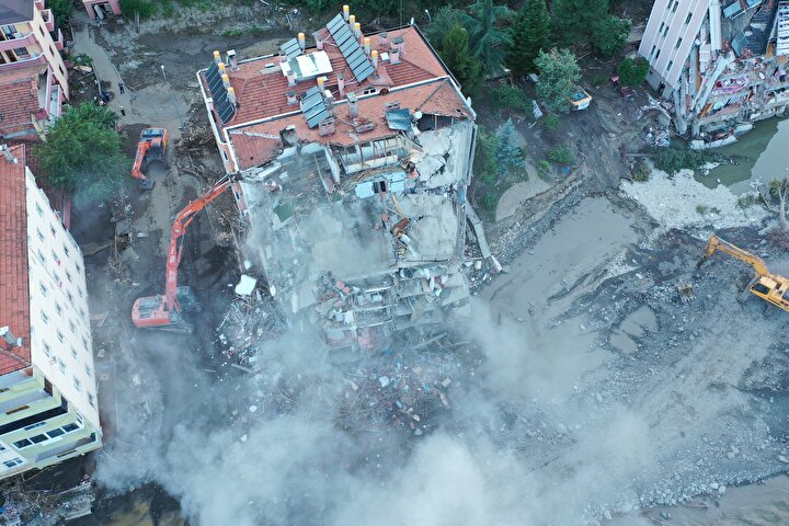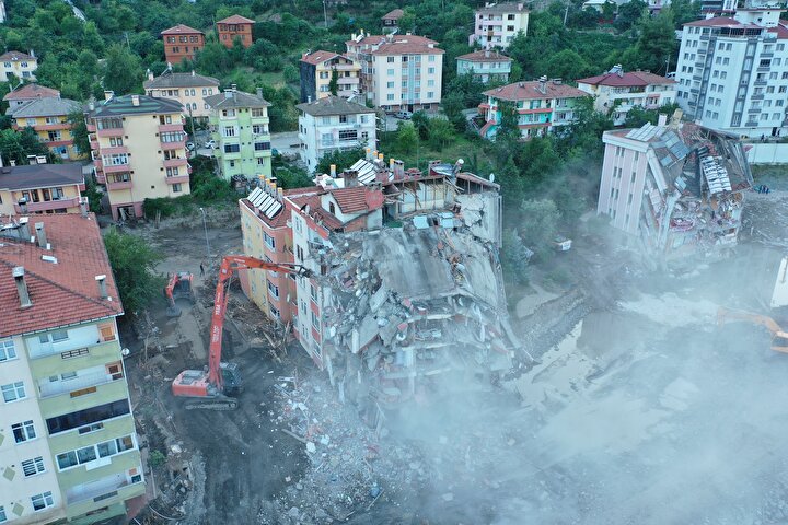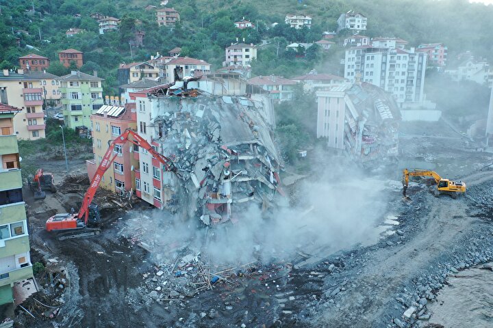 Kastamonu'nun Bozkurt ilçesinde yaşanan sel felaketinde ağır hasar alan 6 katlı Fatih Apartmanı'nın yıkımına başlandı. Çevredeki bazı vatandaşlar yıkımı gözyaşlarıyla izledi.