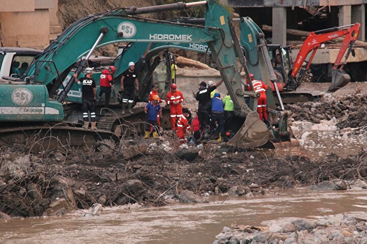 İş makineleri ile yapılan çalışmalarda enkaz altında kaybolduğu düşünülen vatandaşlara henüz ulaşılmadı. Apartmanda oturanların yakınları çay kenarında acı içinde bekleyişlerini sürdürüyor.