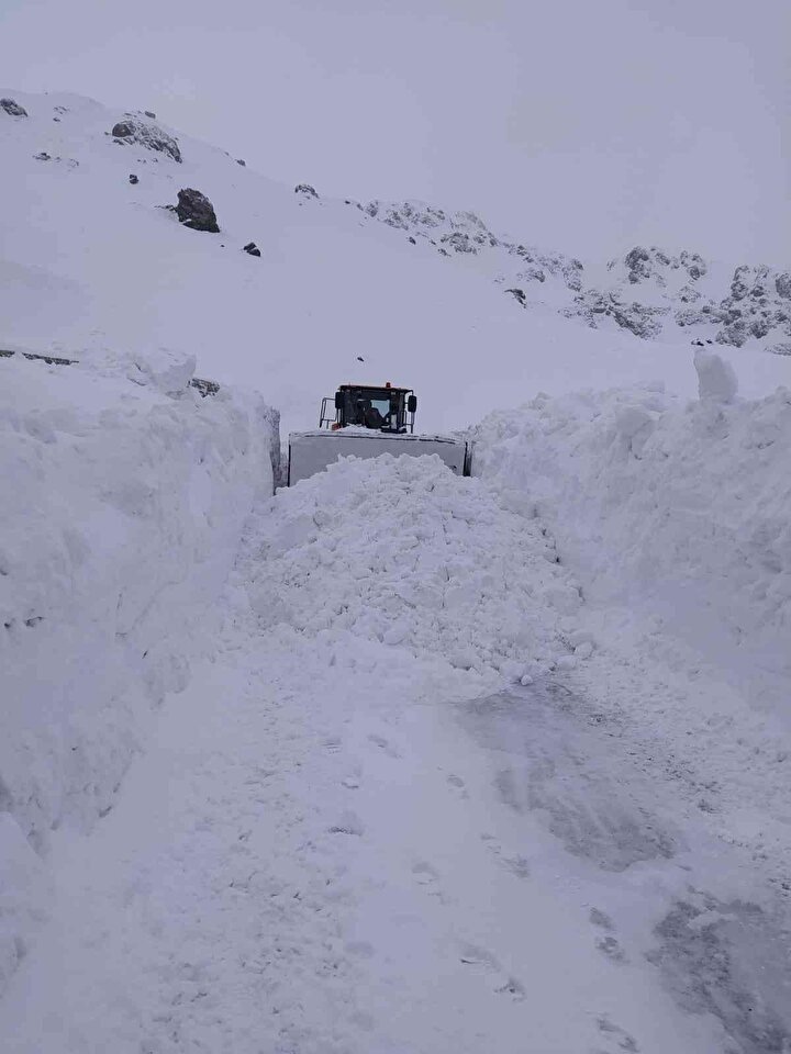 Karayolları 117. Yüksekova Şube Şefliğine bağlı karla mücadele ekipleri, Yüksekova-Şemdinli arasında bulunan Tekeli Mirgesav Üs Bölgesinin yolunda insan boyunu geçen karda çalışma başlattı.