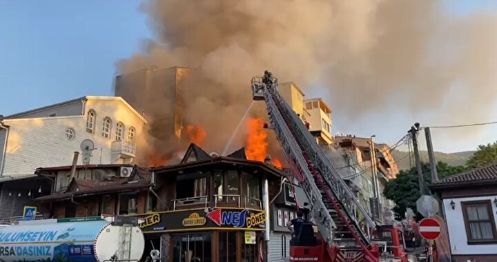 Bursa'da lokantada çıkan yangında alevler bitişikteki iş yerlerine de sıçradı. Ekiplerin alevlere müdahalesi devam ediyor.