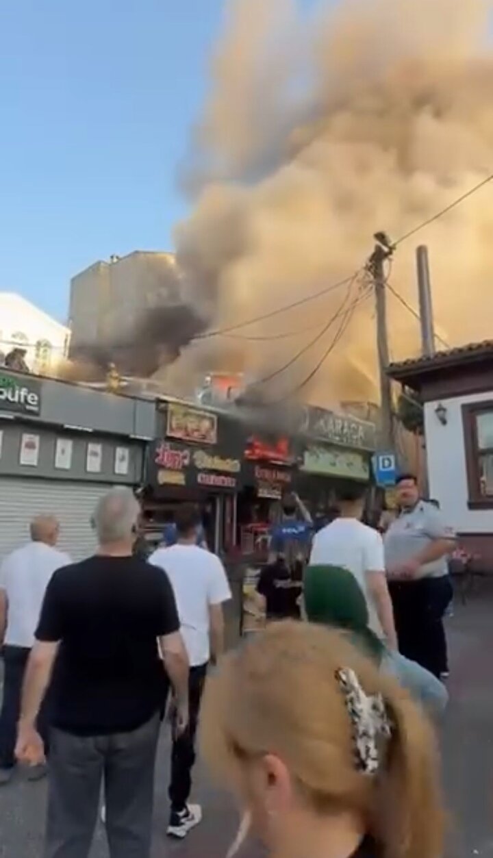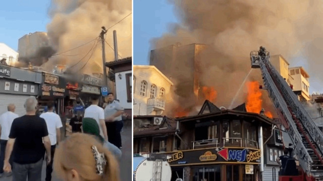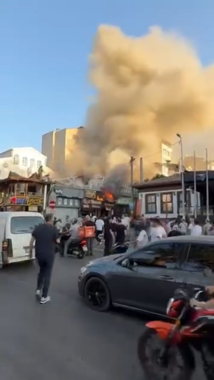 Alevler kısa sürede bitişikteki dükkanlara da sıçrayarak büyüdü. Ekipler, yangını kontrol altına alabilmek için çalışmasını sürdürüyor.