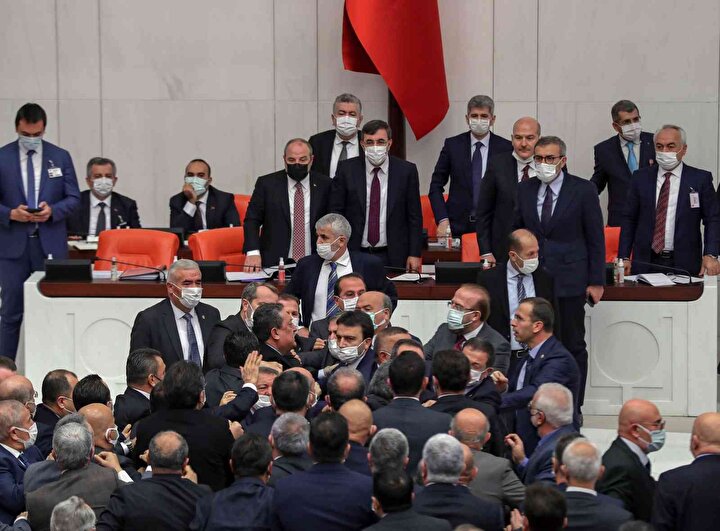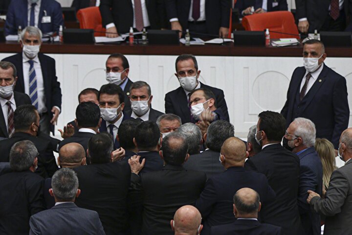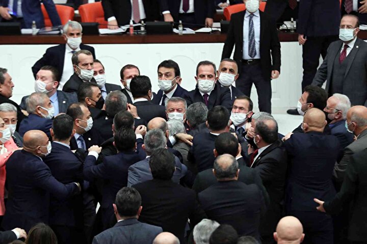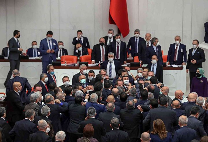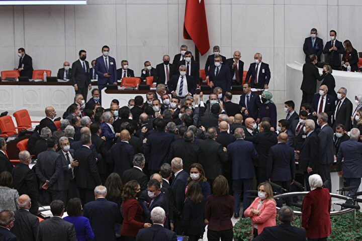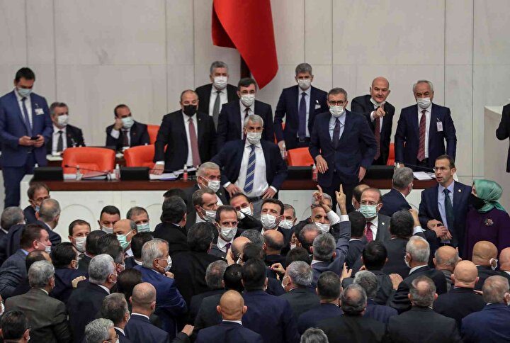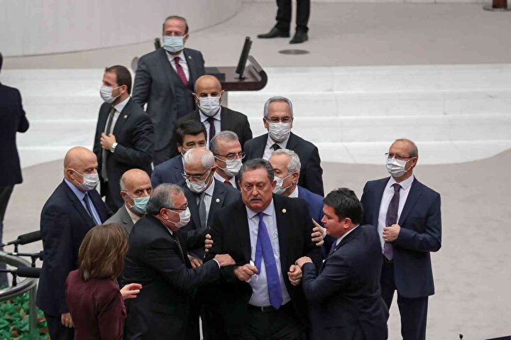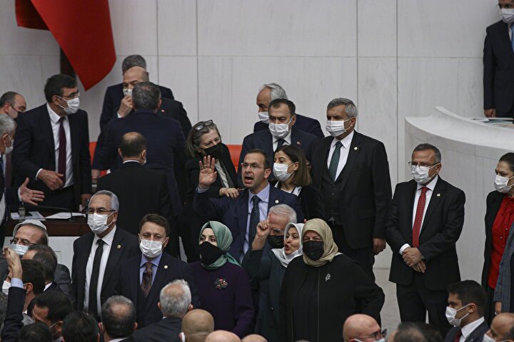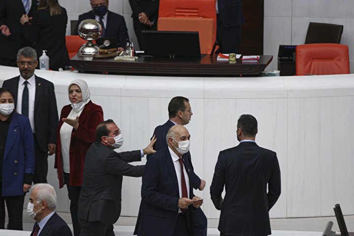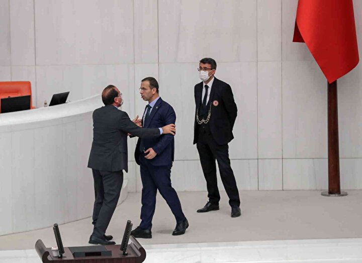 O sırada da AK Parti sıralarından milletvekilleri ayağa kalkarak CHP Grup Başkanvekili ve CHP milletvekillerinin olduğu yere yaklaştı.