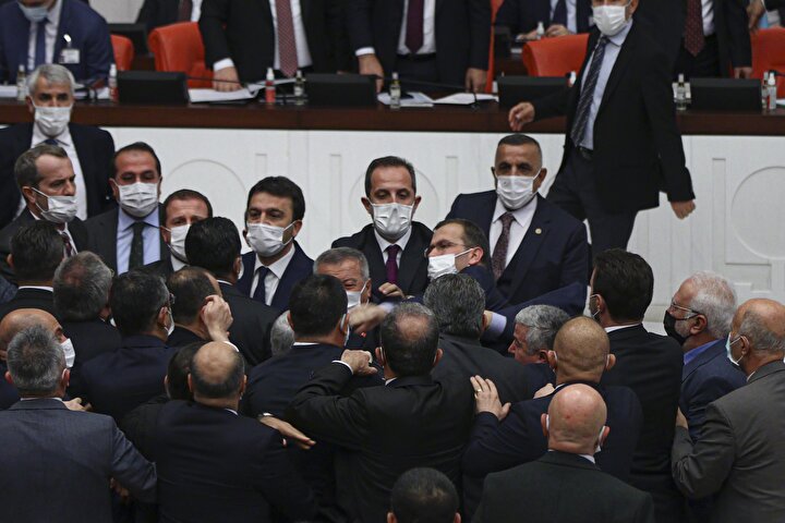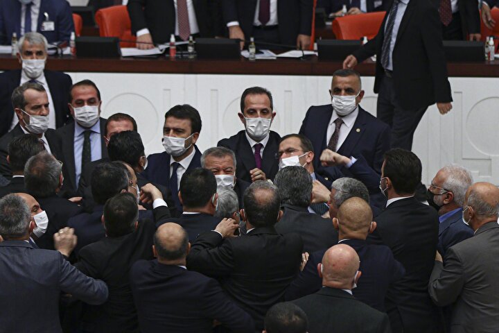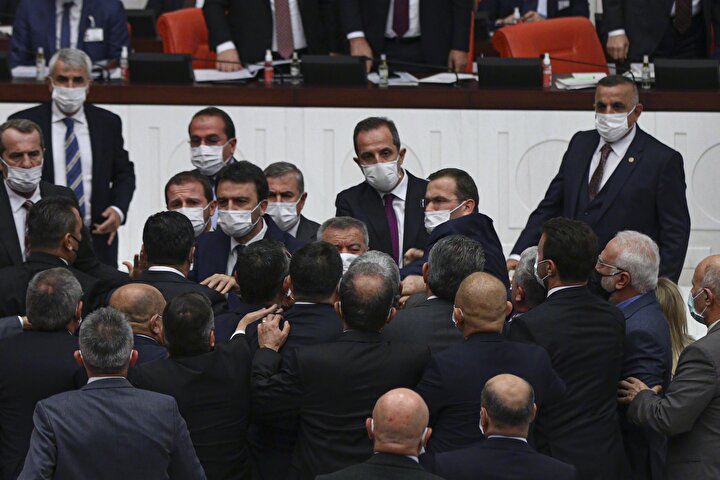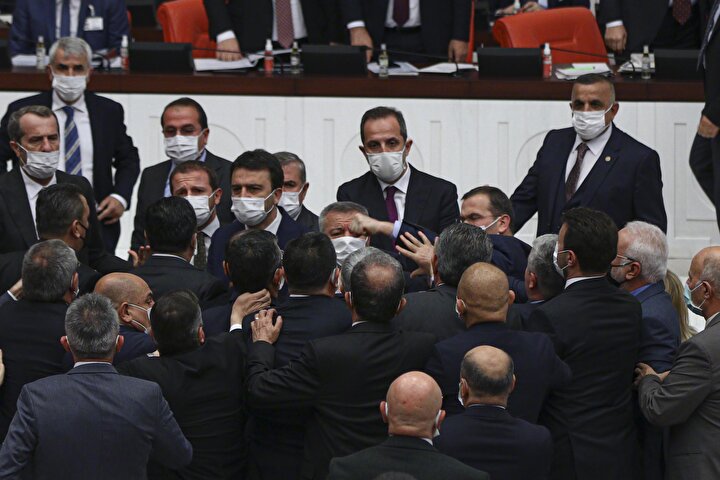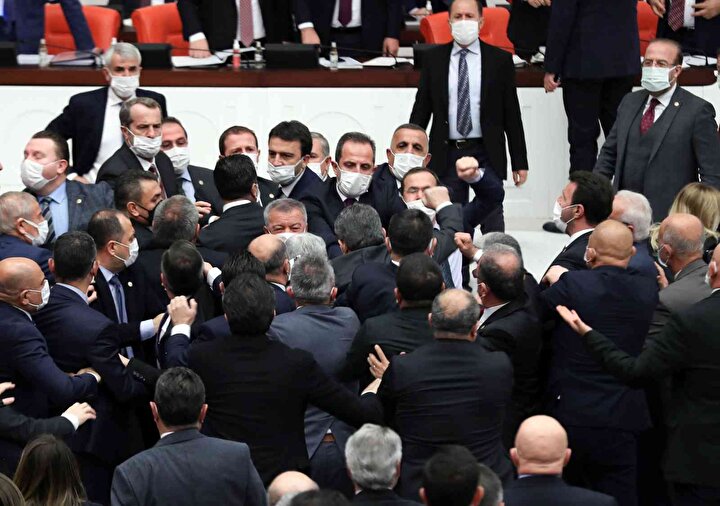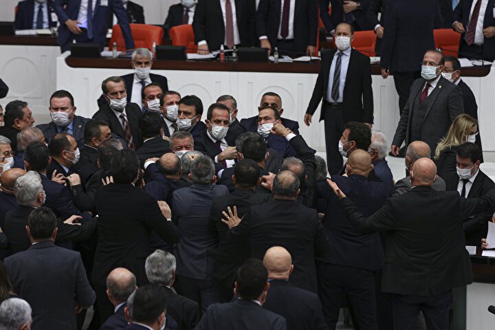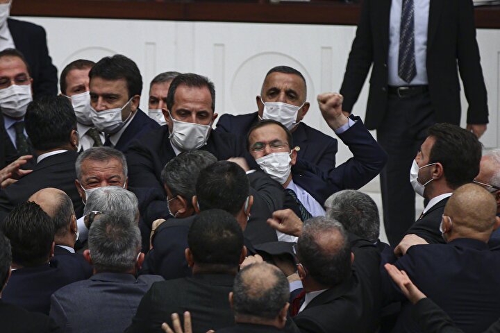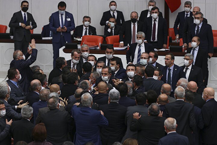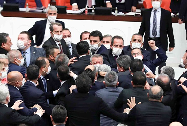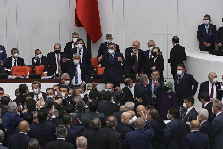 O sırada da AK Parti sıralarından milletvekilleri ayağa kalkarak CHP Grup Başkanvekili ve CHP milletvekillerinin olduğu yere yaklaştı.