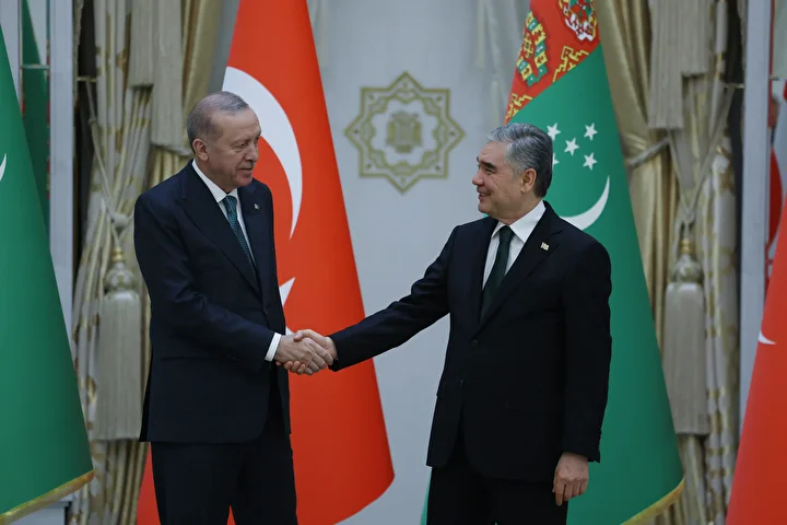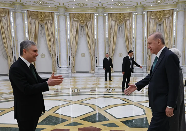 Cumhurbaşkanı Erdoğan ile eşi Emine Erdoğan, Dışişleri Bakanı Hakan Fidan, Enerji ve Tabii Kaynaklar Bakanı Alparslan Bayraktar, Cumhurbaşkanlığı İletişim Başkanı Burhanettin Duran, MİT Başkanı İbrahim Kalın, Cumhurbaşkanı Dış Politika ve Güvenlik Başdanışmanı Akif Çağatay Kılıç ve Türk Devletleri Teşkilatı Aksakallar Konseyi Başkanı Binali Yıldırım da Türkmenistan'a geldi.
