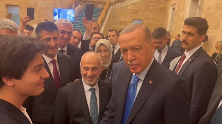 Erdoğan, programda konuşma yapmazken milletvekilleri ile fotoğraf çekiminin ardından TBMM'den ayrıldı.