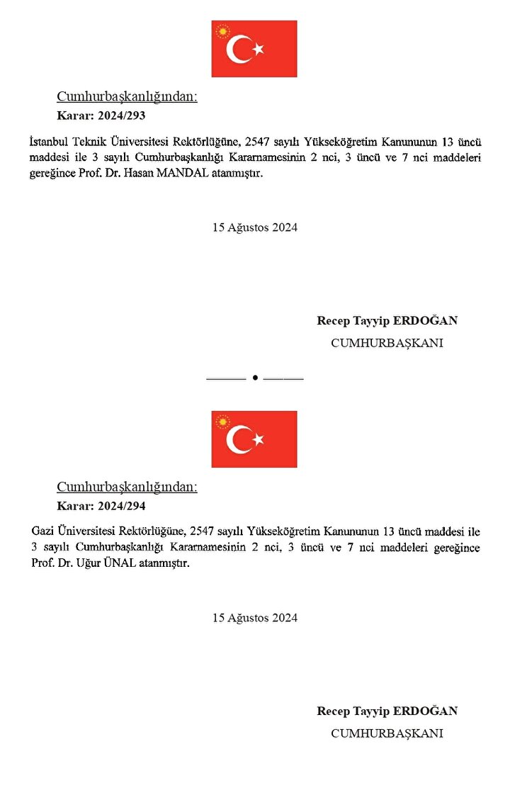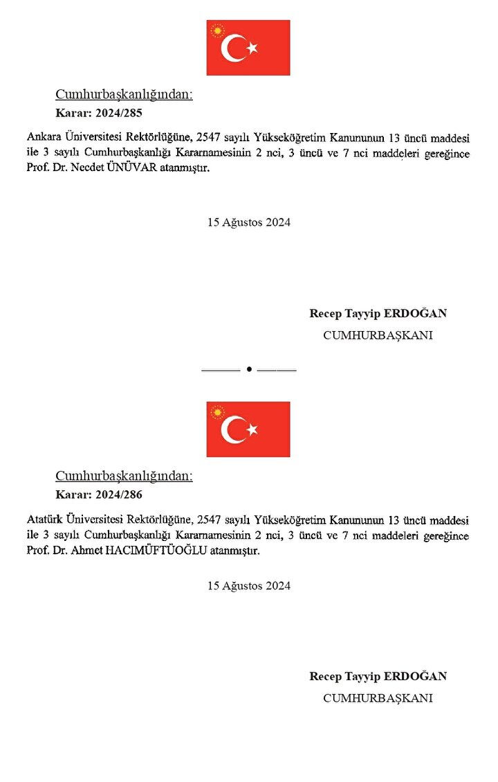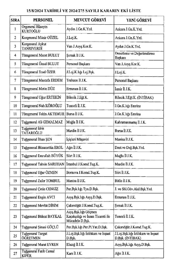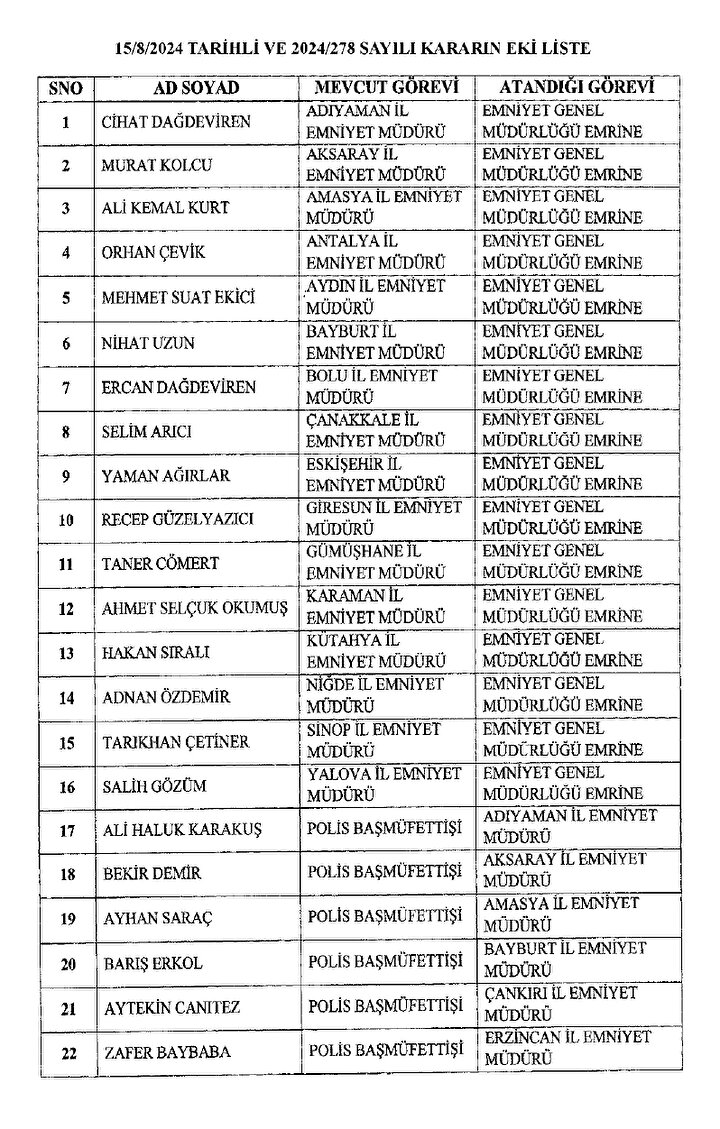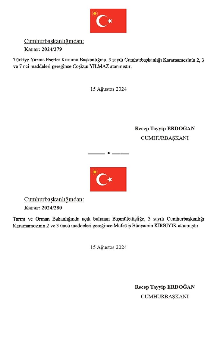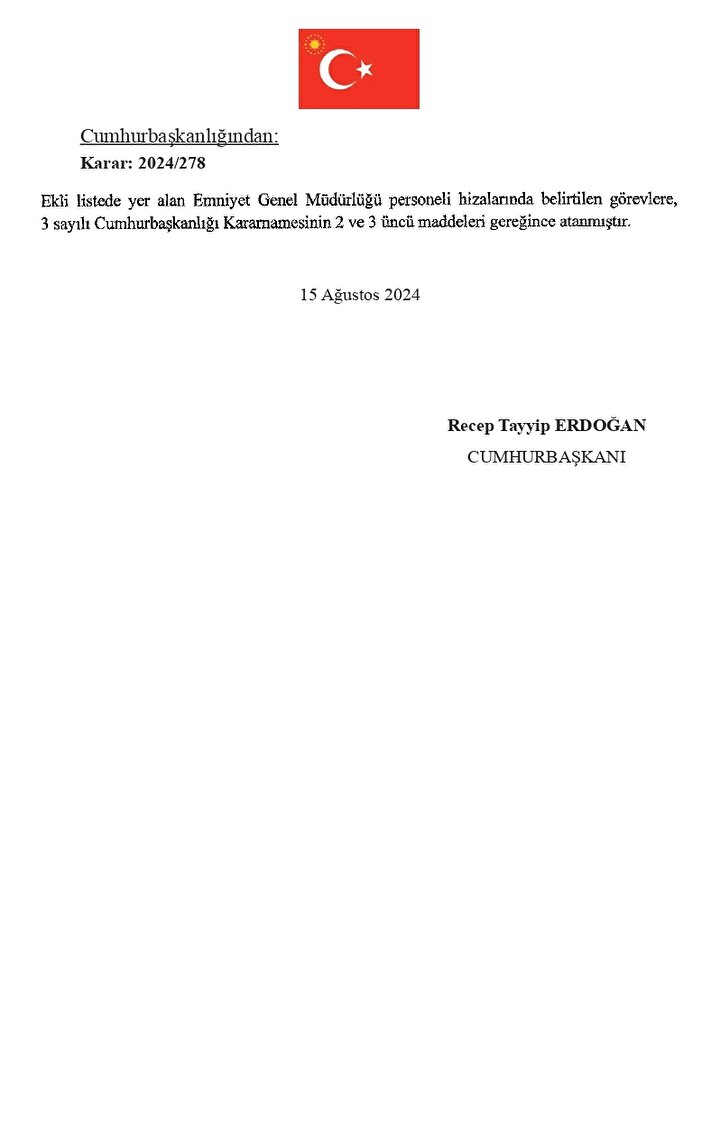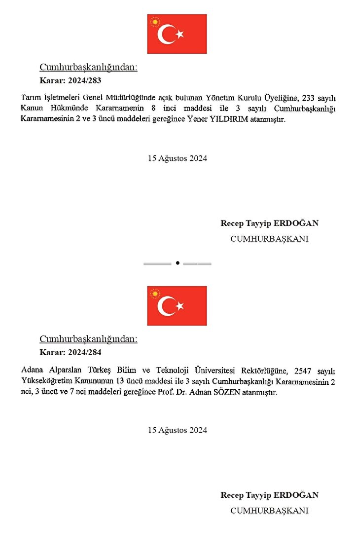 İşte 16 Ağustos 2024 tarihli tüm atama kararları: