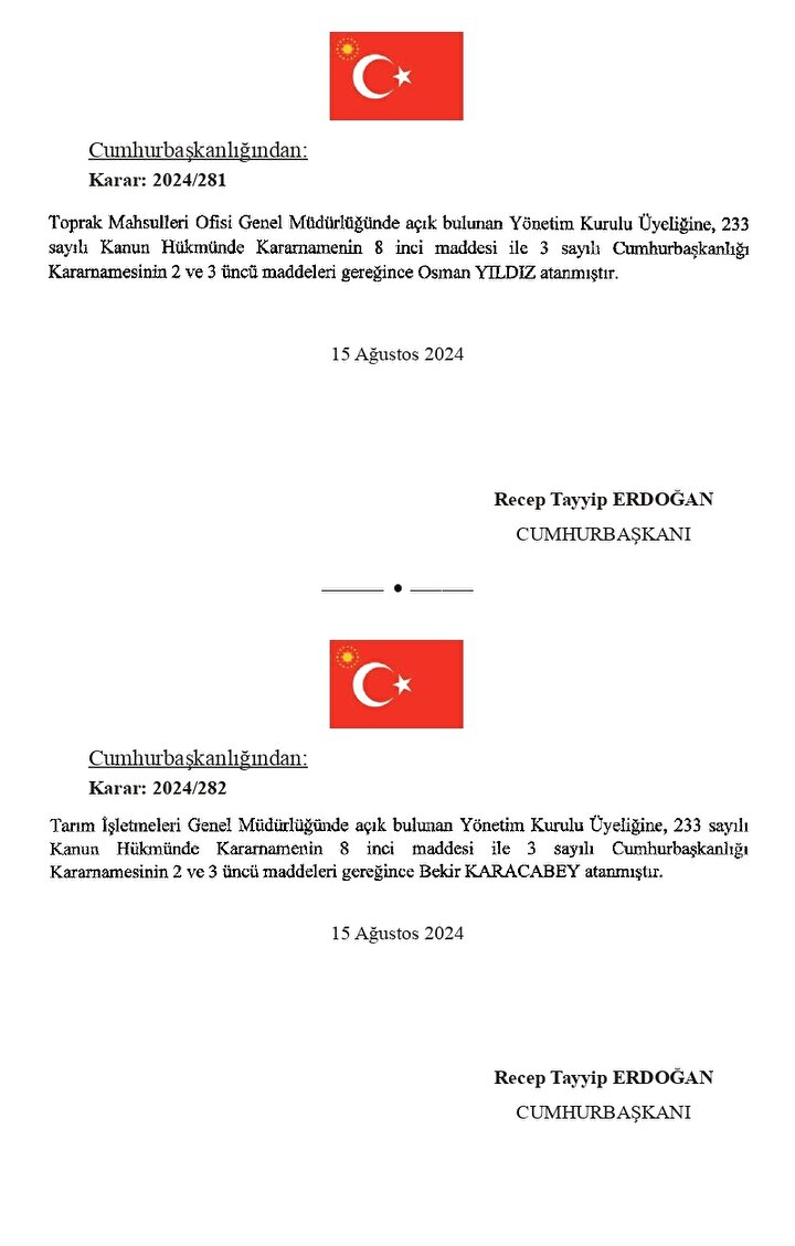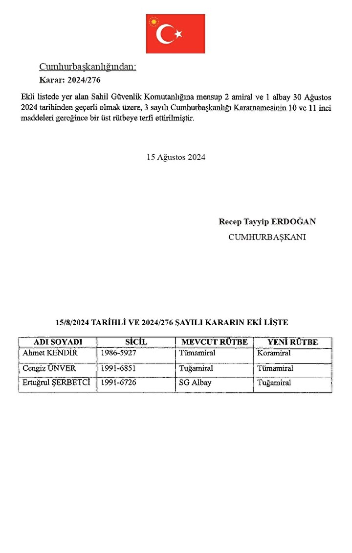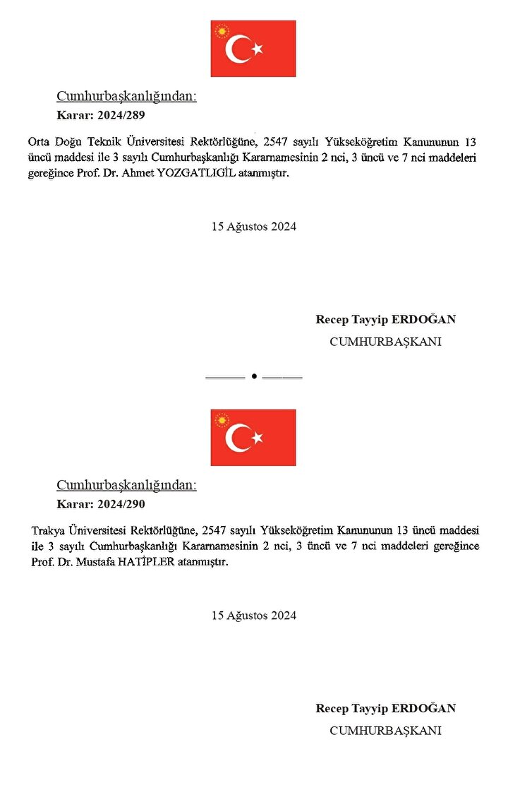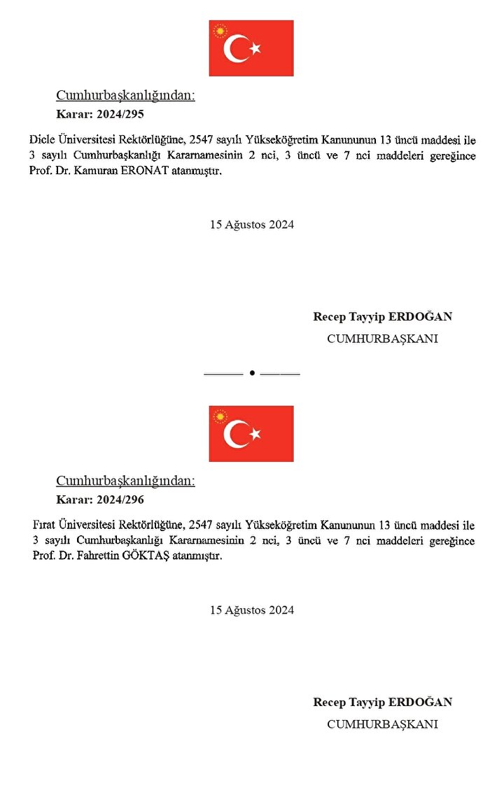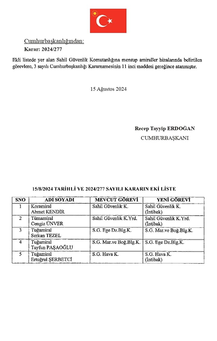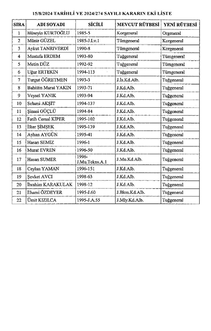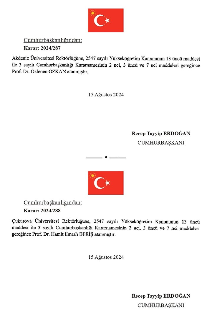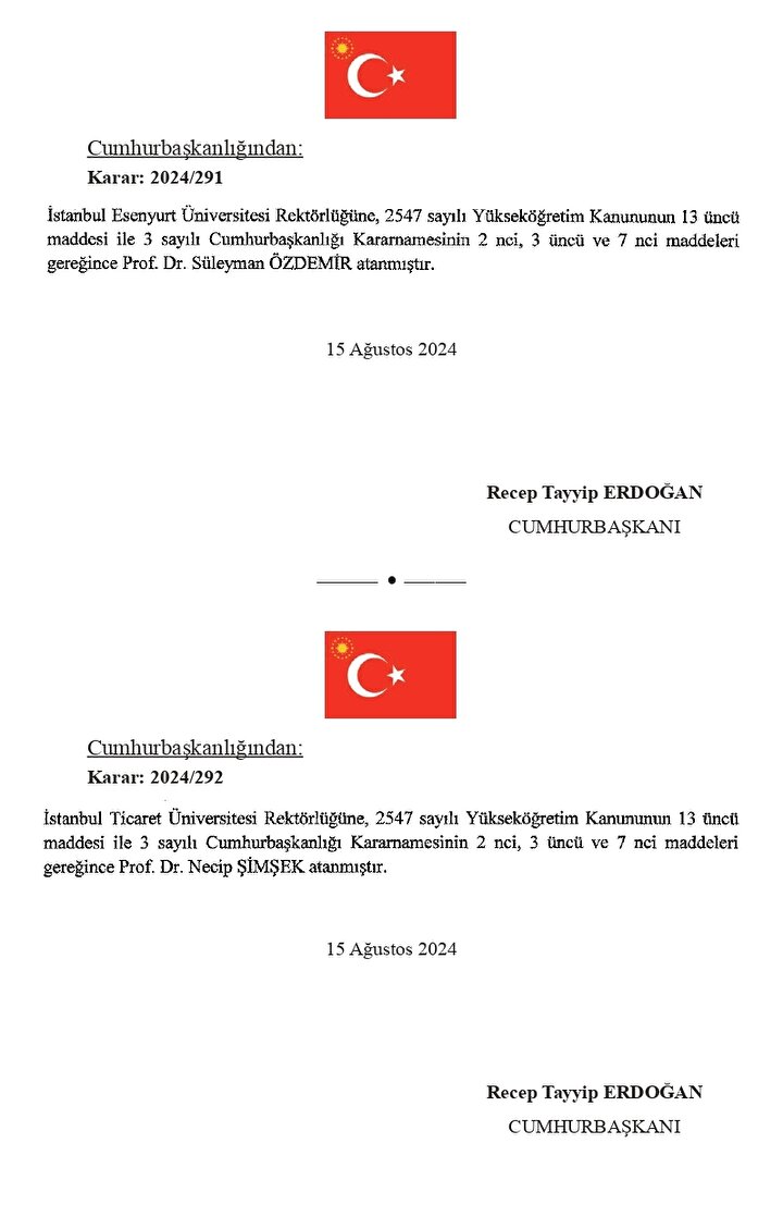 İşte 16 Ağustos 2024 tarihli tüm atama kararları: