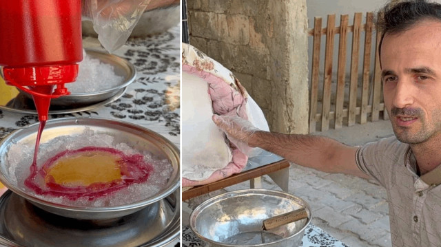 Getirdiği kara çeşitli meyve şuruplarıyla tatlandıran Çelik, tabağını da 50 TL'den satışa çıkardı. Tabakta kar yiyenler, hem serinlediklerini hem beğendiklerini belirtti.