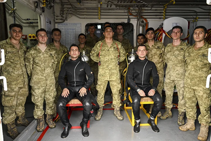 Su üstündeki süpervizörler ise dalgıcı hem başlığındaki hem de aynı mevkiye indirilen su altı cihazı üzerindeki kameradan takip ederek, olası deniz altı araçları veya batık gemilere müdahale konusunda yönlendirdi.