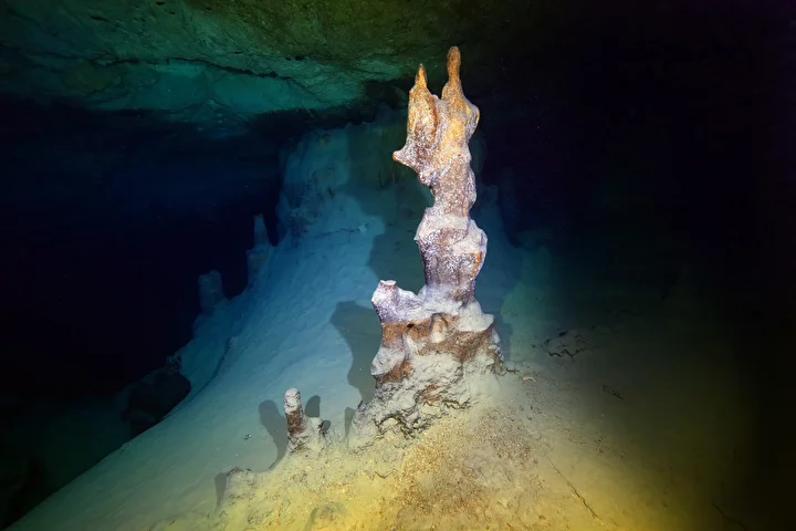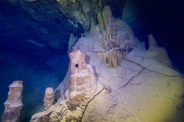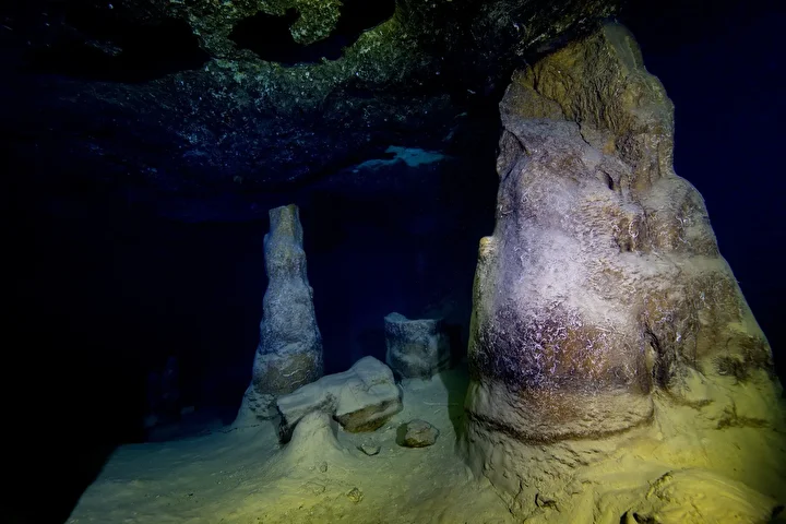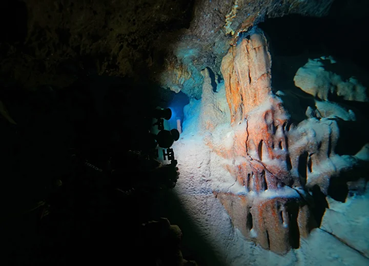 Su altı mağarasındaki kum piramitleri, bacaları, sarkıt ve dikitleri görüntüleyen dalgıçlar, etkinlik boyunca deniz canlılarının renkli dünyasına tanıklık etti.