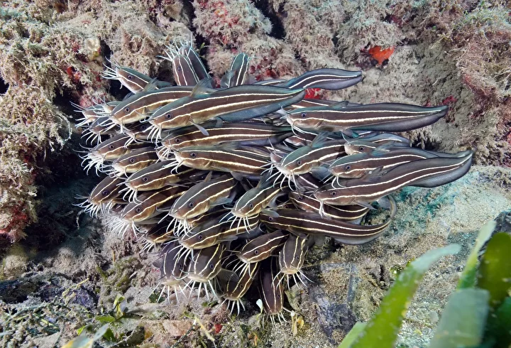 Doğu Akdeniz'deki canlı çeşitliliğini kayıt altına almak için Hatay'da bir araya gelen dalgıçlar, 8 yıl önce keşfedilen Bilge Taş Mağarası'nın yanı sıra vatozdan kedi balığına birçok türü su altı kameralarıyla görüntüledi.