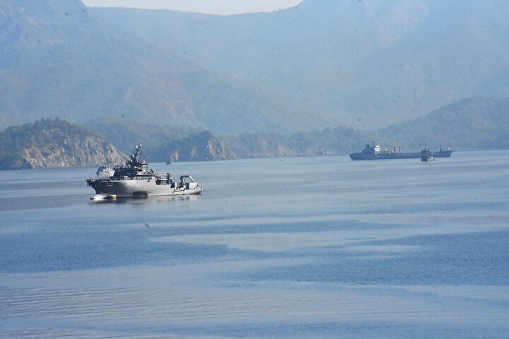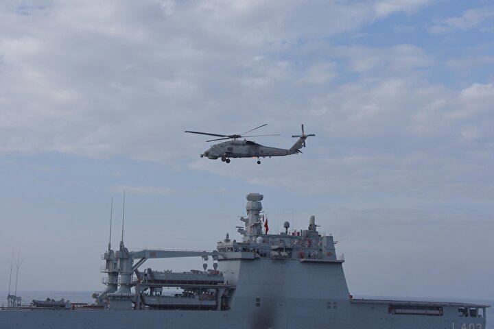 Tatbikatı görüntüleyecek basın mensupları da Aksaz Deniz Üssü'nde bulunan, Türkiye'de inşa edilen ve dünyanın en büyük amfibi çıkarma gemilerinden TCG Sancaktar'da yer aldı.