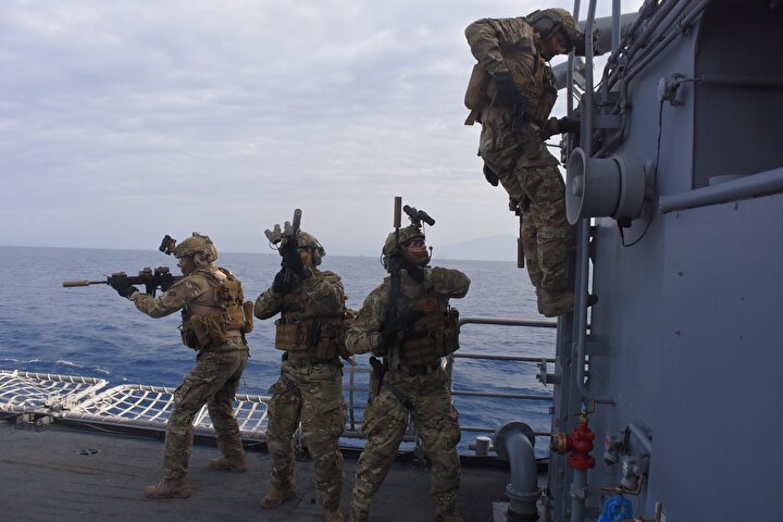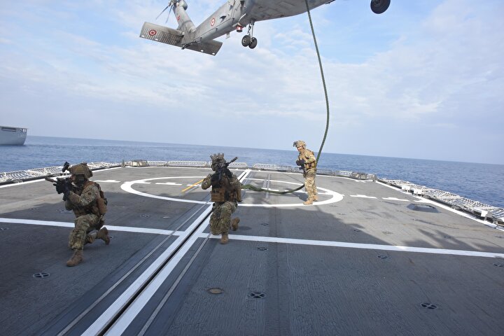 Türkiye'nin ev sahipliğinde, Türk Deniz Kuvvetleri Komutanlığı sevk ve idaresinde düzenlenen "Doğu Akdeniz-2019 Davet Tatbikatı" 15 ülkeden 47 gemi ve 4 bin 700 personelin katılımıyla gerçekleştiriliyor. İlk tatbikatı SAT Komandolarının yaptığı tatbikat kapsamında senaryo gereği düşman unsuru olan gemiye helikopterden halatla inen komandoların operasyonu ise nefes kesti.