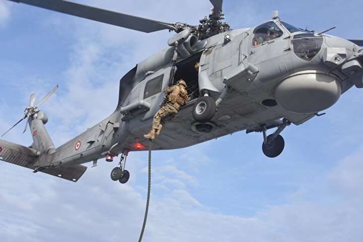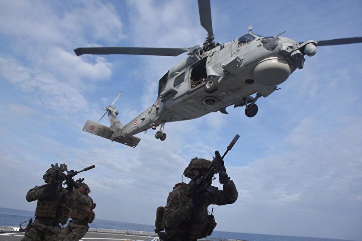 İlk tatbikatı SAT Komandoları yaptı. Senaryo gereği düşman unsuru olan gemiye helikopterden halatla inen komandoların operasyonu, nefes kesti.