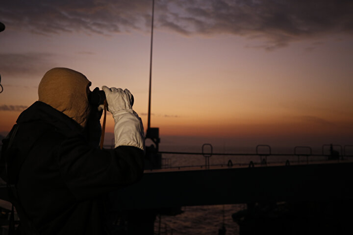 Saatler 04.00'ı gösterdiğinde, Aksaz Körfezi'ne açılan fırkateynler senaryo gereği asimetrik tehdit altında körfezden çıkış yaptı.