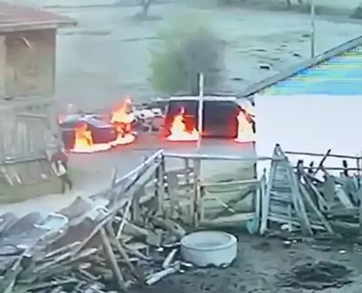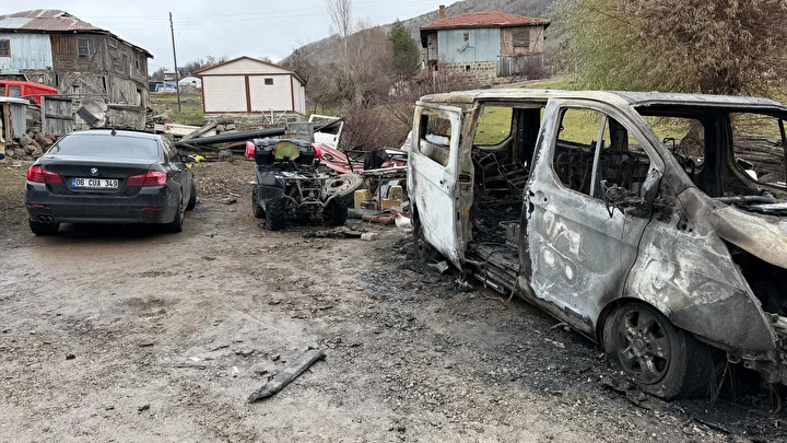 Çukurören Mahallesi Muhtarı Hasan Sağlam ve taşıt alım satımı ile uğraşan oğlu Ali Osman Sağlam'a ait ATV, minibüs, otomobil ve kamyonet, dün sabah saatlerinde evlerinin önünde park halindeyken, 3 kişi tarafından benzin dökülerek ateşe verildi.
