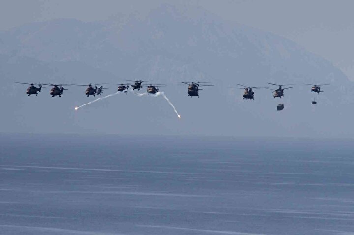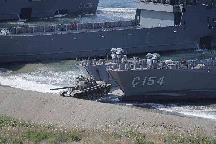 Deniz top ateş desteğiyle kara bombardımanı yapılmasıyla başlayan tatbikatta, amfibi harekatını destekler nitelikteki topçu ve havan atışları yapıldı ardından Sikorsky tipi helikopter obüsü, CH-47 helikopteri ise mühimmat konteynerini hedeflenen bölgeye taşıdı.