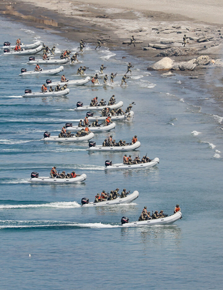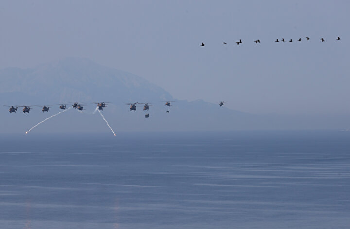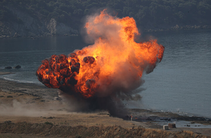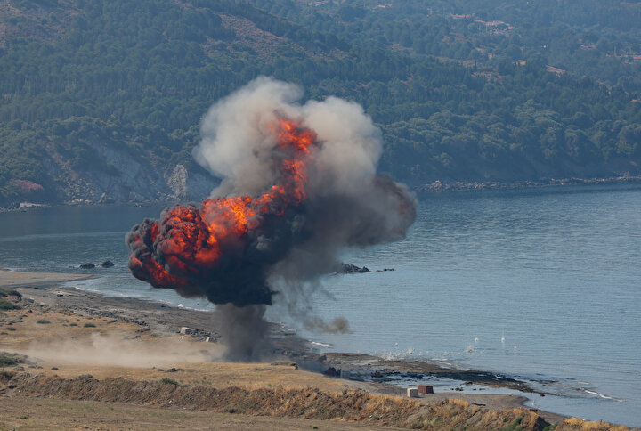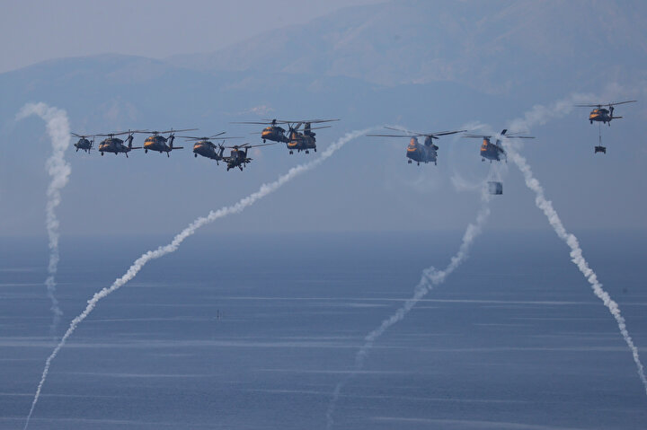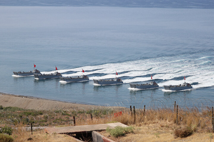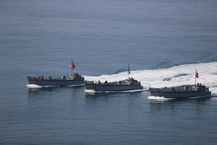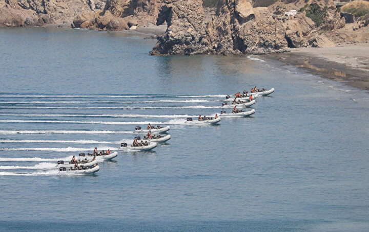 Tatbikatta kıyıya yanaşan çıkarma gemilerinin kapak atması sırasında Batman'daki üslerinden havalanan Akıncı TİHA'lar da tam isabetli atışlarıyla harekata destek oldu.