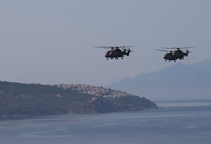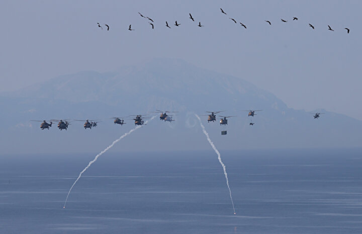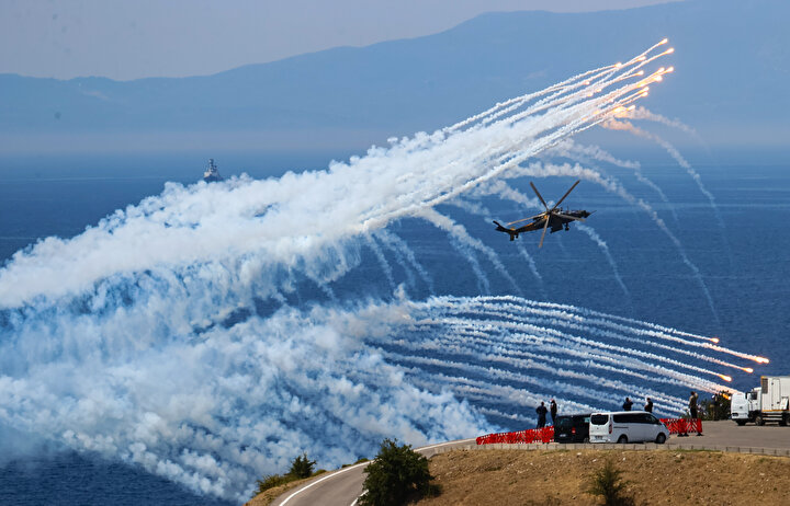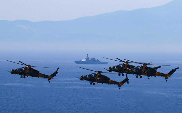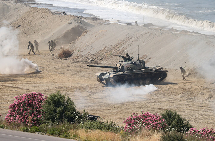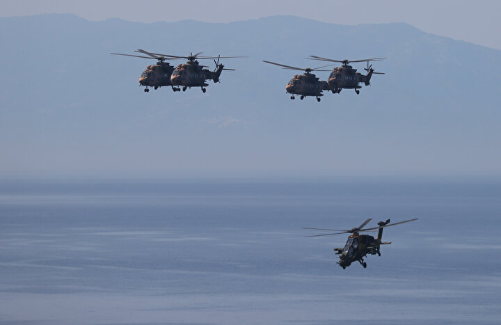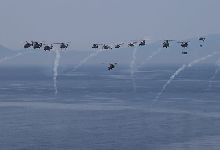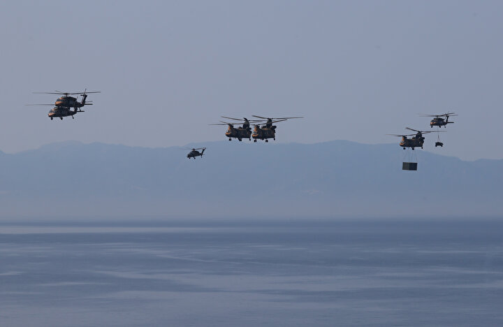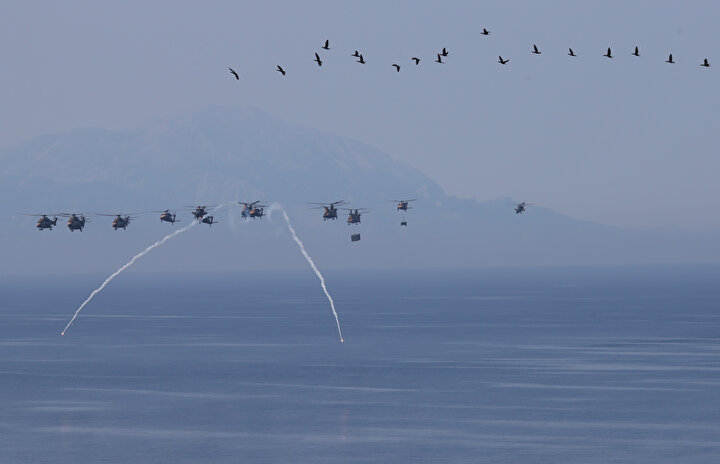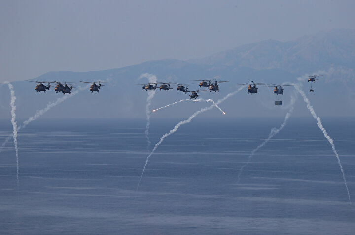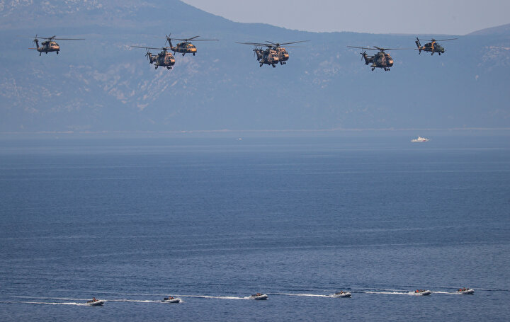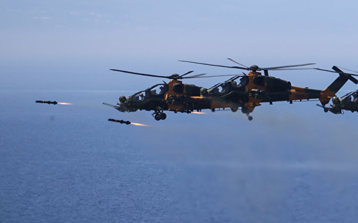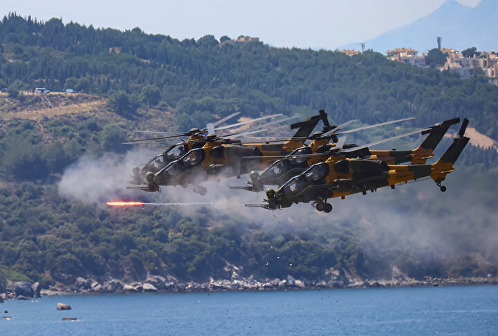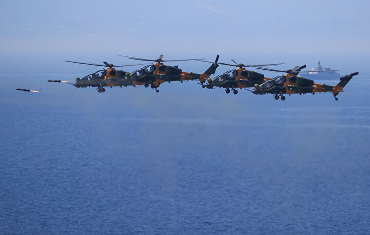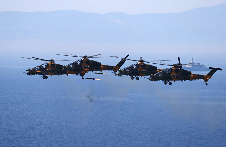 Amfibi harekat, taarruz helikopterlerinin atışlarıyla devam etti. Uzun Menzilli Tanksavar Füze Sistemi (UMTAS) atışlarında hedefler tam isabetle vuruldu. Topçu ve havan atışları da bölgeyi baskı altına aldı.