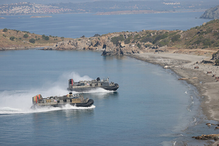 Topçu ve havan atışlarıyla desteklenen amfibi harekatta, yerli ve milli imkanlarla inşa edilen TCG Heybeliada ve TCG Büyükada, 6 kilometre mesafeden 76 milimetrelik deniz toplarını ateşledi. Senaryo gereği düşmanın sembolik komuta yeri, Türk ve ABD topçu bataryalarıyla ateş altına alındı.