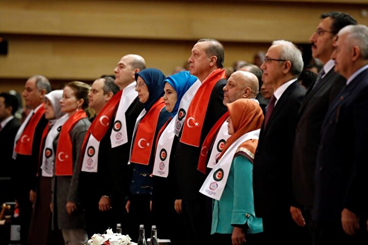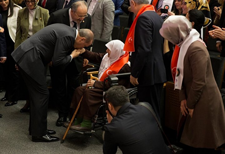 Buluşmada öne çıkan fotoğraflardan birisi de Cumhurbaşkanı Recep Tayyip Erdoğan'ın konuklar arasında bulunan yaşlı bir teyzenin elini öpmesiydi.