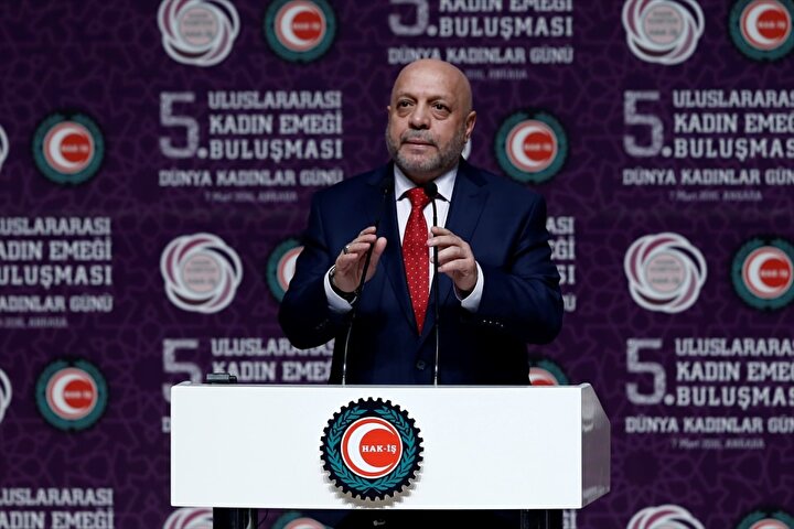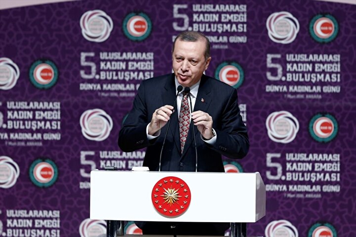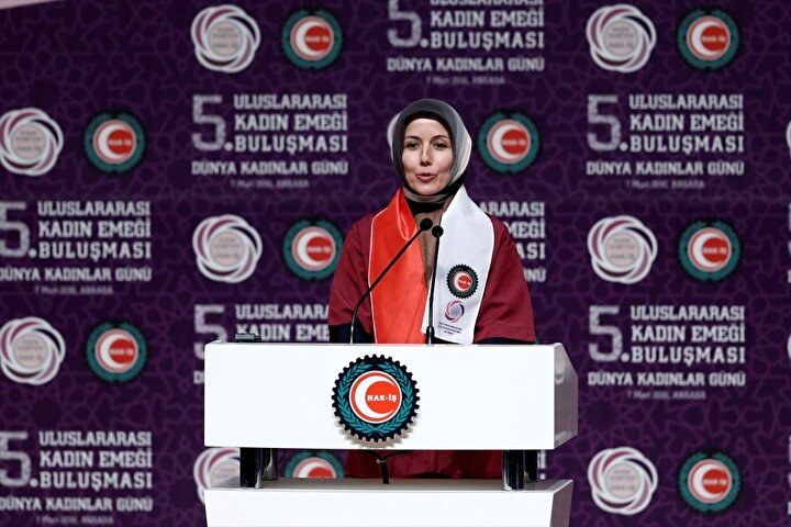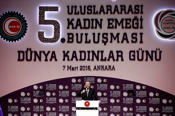 Erdoğan, Dünya Kadınlar Günü dolayısıyla Hak-İş tarafından ATO Congresium'da düzenlenen 5. Uluslararası Kadın Emeği Buluşmasındaki konuşmasına, etkinliği düzenleyenleri tebrik ederek başladı.