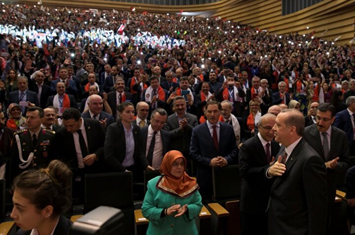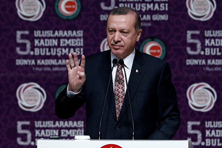 Kadınların cinsiyetinden önce insan sıfatından sahip olduğu hakları kullanabilmesi yolunda verilen mücadeleyi saygıyla selamladığını belirten Erdoğan, Bizim medeniyetimizde, inancımızda, kültürümüzde kişiler cinsiyetleriyle değil, insan sıfatıyla muhatap alınır.