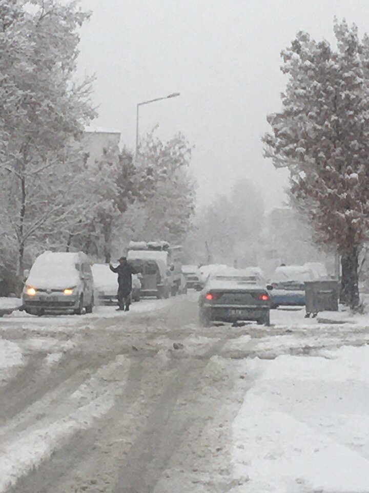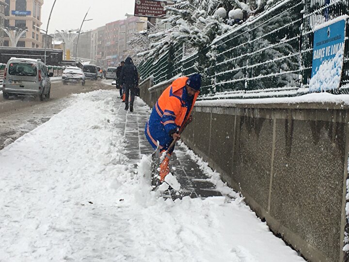 Metrekareye 16.1 kilogram yağışın düştüğü merkezde büyükşehir ve ilçe belediyelerine ait ekipler, temizlik çalışması başlattı. İş makineleri buzlanma tehlikesine karşı yollara tuz döktü.