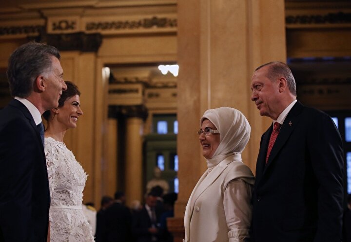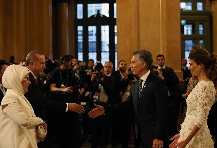 Cumhurbaşkanı Recep Tayyip Erdoğan ve eşi Emine Erdoğan'ı, Arjantin Devlet Başkanı Mauricio Macri ve eşi birlikte karşıladı.