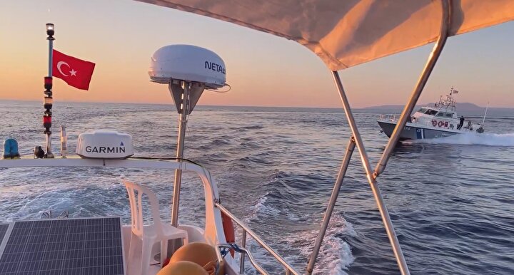Ekiplerin Özdemir'e ait teknenin çevresinde hızla turlaması, tekne personeli tarafından görüntülendi.Yunan botundakiler, görüntülendiklerini fark etmelerinin ardından bölgeden hızla uzaklaştı.