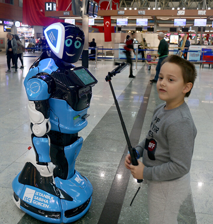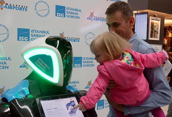 İstanbul Sabiha Gökçen Uluslararası Havalimanı'nda (İSG) yolculara yardımcı olması planlanan "Aerobot" adlı robot testlere başladı.