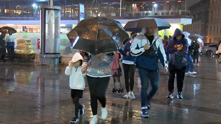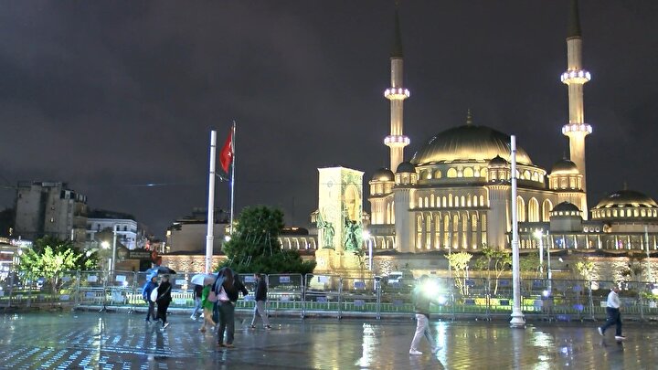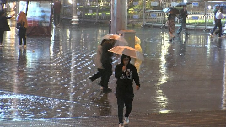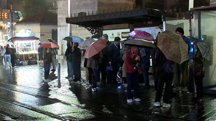 İstanbul'da meteorolojinin uyarılarının ardından akşam saatlerinde sağanak yağış etkili oldu. Taksim Meydanı'nda yağmura yakalananlar otobüs durağına sığındı. Turistler ise yağmurun altında fotoğraf çektirdi.