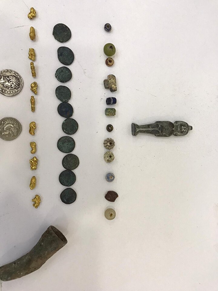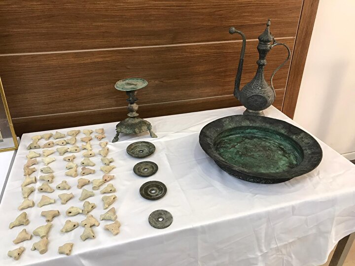 Eserler arasında, Anadolu arkeoloji tarihinin önemli parçalarından erken tunç çağına ait 4 bin yıllık ana tanrıça heykelciği, Akhamenid ya da Asur dönemi aslan ve boğa figürlü mezar buluntusu altın kolye, 2 bin yıllık Antiokya gümüş ve bronz karışımı bilion define grubu sikkeleri, ejderha başı bronz obje, Osmanlı dönemi el işçilikli gümüş işlemeli kemerler, doğal afetlerden koruduğuna inanılan dua metini ve altın yaldızlı el yazması Kur'an-ı Kerim sayfasının da bulunduğu belirtildi.