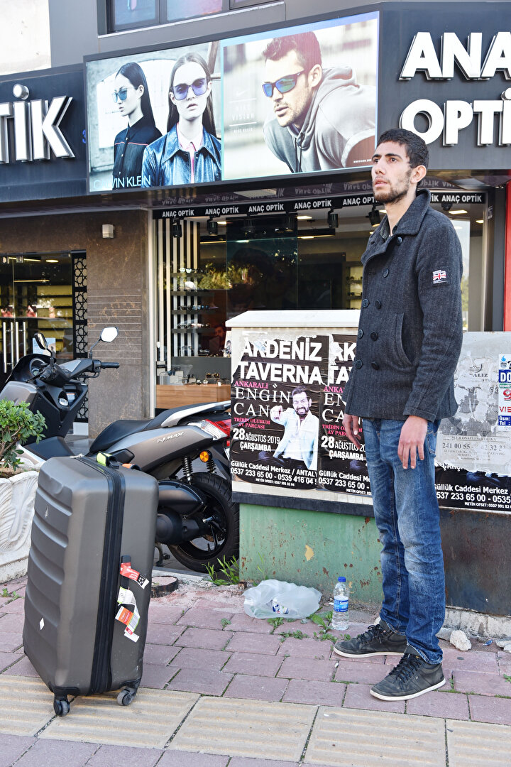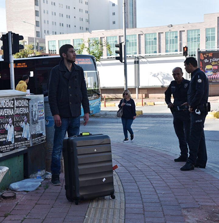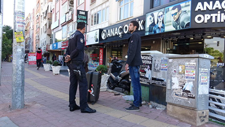 Yaya geçidinin hemen önündeki kaldırımda, bir kişinin yanında bavuluyla ayakta hareketsiz durduğunu gören esnaf, durumu polise bildirdi.