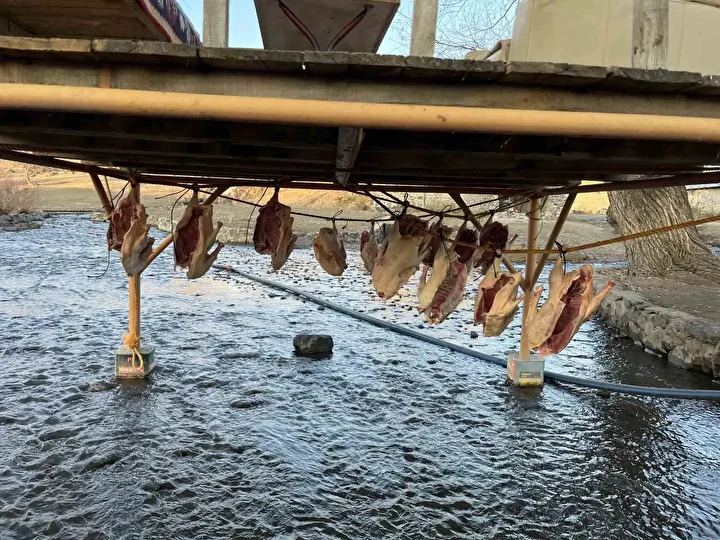 Kaz etinin lezzetini artıran ve uzun süre saklanmasını sağlayan bu geleneksel yöntem, Kars’ın iklim şartlarından gücünü alıyor. Kaz etleri, özellikle sabah ve akşam ayazını alması için yüksek yerlere asılıyor. Bu, etin hem rüzgar almasını hem de soğuğun iyice işlemesini sağlıyor.