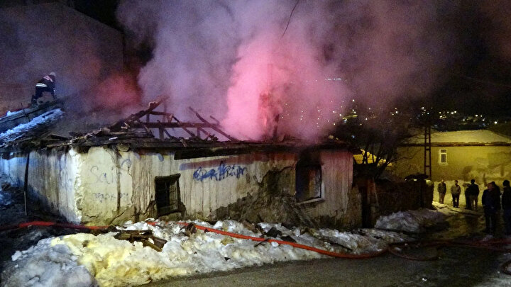 İtfaiye ekiplerinin yangına müdahalesi sırasında, evin çatı katı çöktü. Söndürme çalışmalarının ardından, olay yerine gelen iş makineleriyle evin enkazı kaldırıldı.