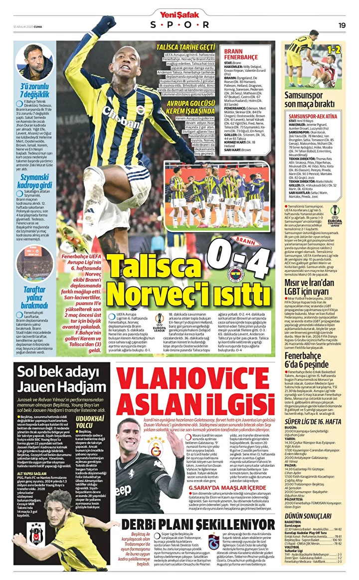 Fenerbahçe UEFA Avrupa Ligi’nin 6. haftasında Norveç ekibi Brann’ı deplasmanda farklı mağlup etti. Sarı-lacivertliler, puanını 11’e yükselterek son 2 maç öncesi üst tur için büyük avantaj yakaladı. F.Bahçe’nin golleri Kerem ve Talisca’dan (3) geldi.