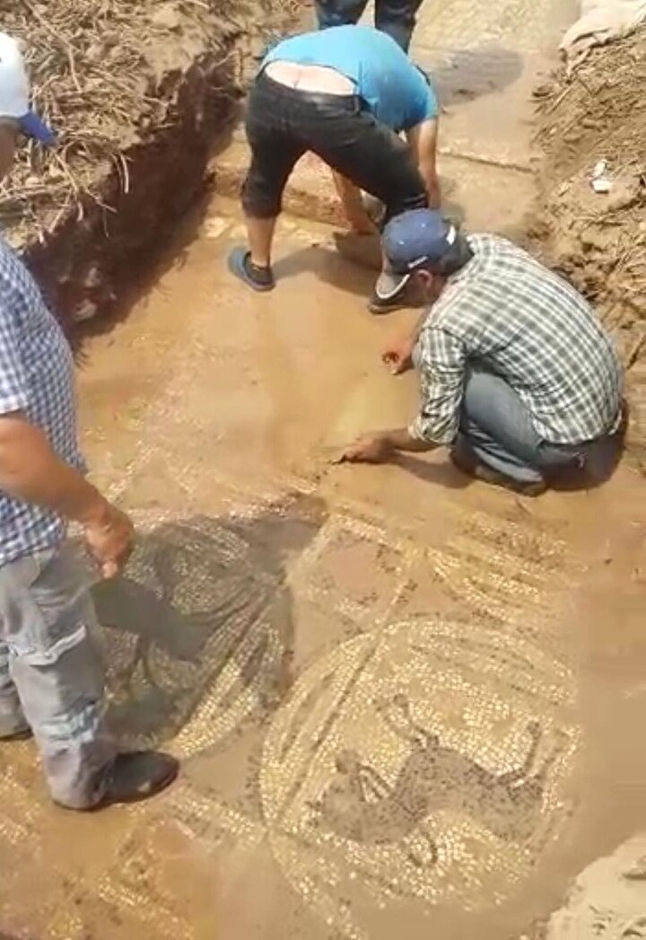 Bunun üzerine izinsiz kazı yapılan bölgeye operasyon düzenleyen jandarma ekipleri, üzerinde çeşitli hayvan motifleri ile yazıların yer aldığı Roma dönemine ait 2 bin 200 yıllık olduğu değerlendirilen yaklaşık 50 metrekare büyüklüğündeki mozaiği belirtilen tarlada buldu.