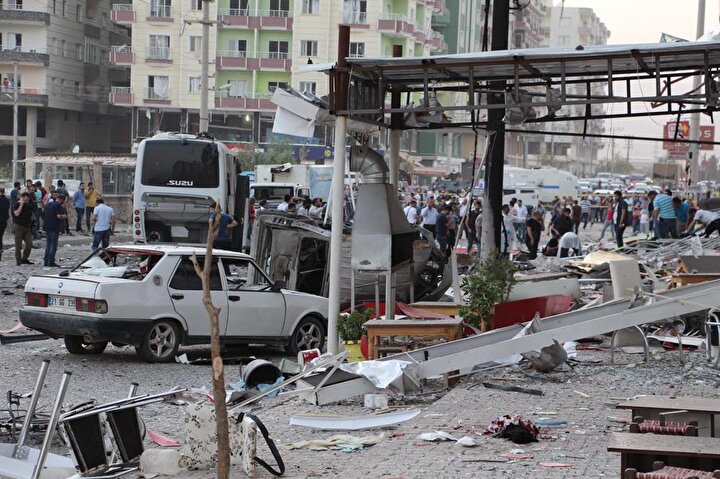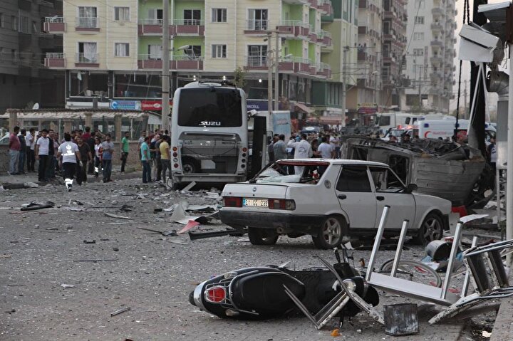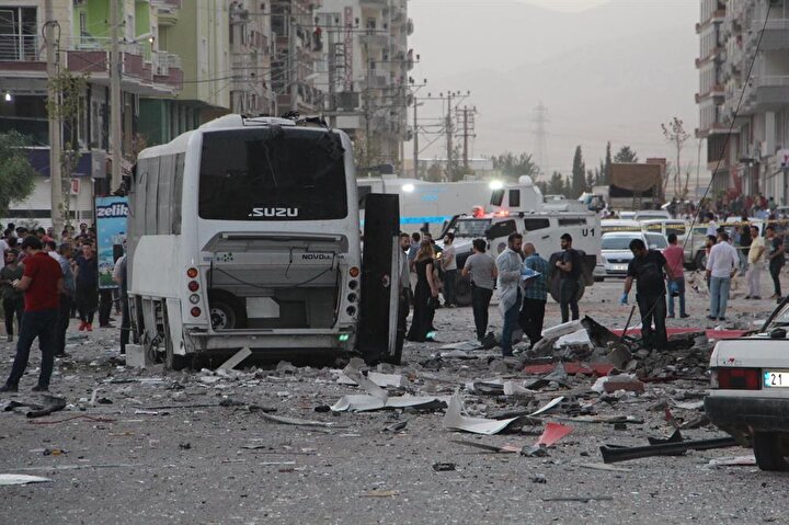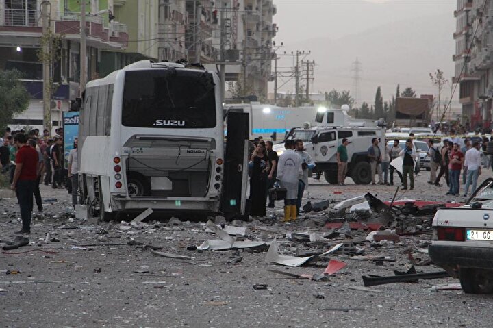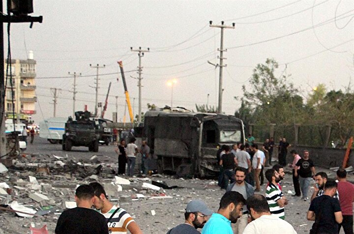 PKK'lı teröristler, Kızıltepe'de polis servis aracının geçişi sırasında yol kenarına park edilen bomba yüklü aracı infilak ettirdi.