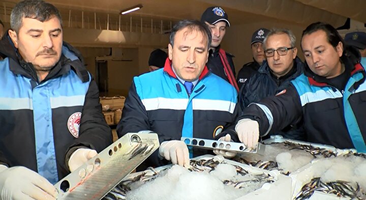 "Sahil Güvenlik Komutanlığı, Deniz Polisi ve İl Tarım ve Orman Müdürlüğü Balıkçılık ve Su Ürünleri Şube Müdürlüğü ekiplerimizle beraber denizde denetim gerçekleştirdik. İstanbul Büyükşehir Belediye Gürpınar Su Hali'nde yasal boyun altında avlanan balıkları tespit ettik. Bu balıklara el koyma işlemi gerçekleştirdik. Hamsi var bir miktar. 9 santimetre olması gerekirken yaklaşık 5,6 santimetre civarında tespit ettik bunlara el koyduk.