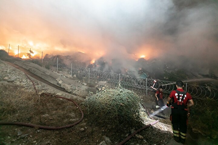 Mersin'de atık maddelerin bulunduğu alanda yangın çıktı, ekipler söndürmek için sabaha kadar mücadele edip kontrol altına aldı. Belediyenin iş makinalarının da destek verdiği yangın bölgesinde soğutma çalışmalarının sürdüğü bildirildi.